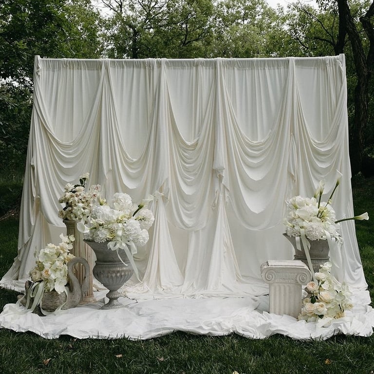 Ce blanc nuage se marie avec une multitude de textures florales. Il met en valeur les pétales délicats, les nuances crème, les feuillages vert sauge ou les touches nude qui réchauffent la composition. Dans un décor de cérémonie laïque, il apporte une atmosphère pure, presque flottante. Sur une table d’honneur, il unifie l’ensemble, donne une impression de douceur et de continuité.