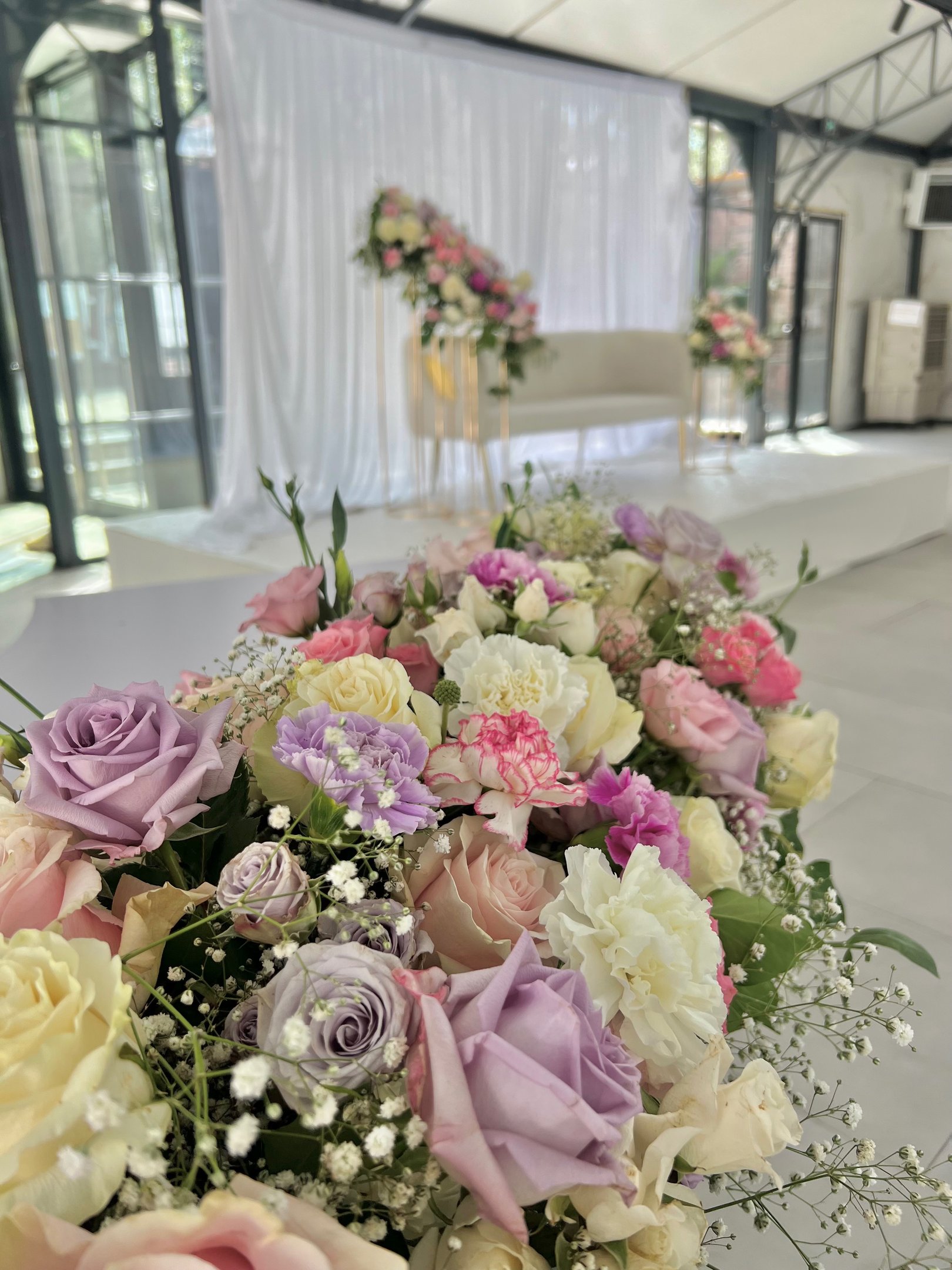 Cérémonie : arche florale, allée fleurie, pupitre